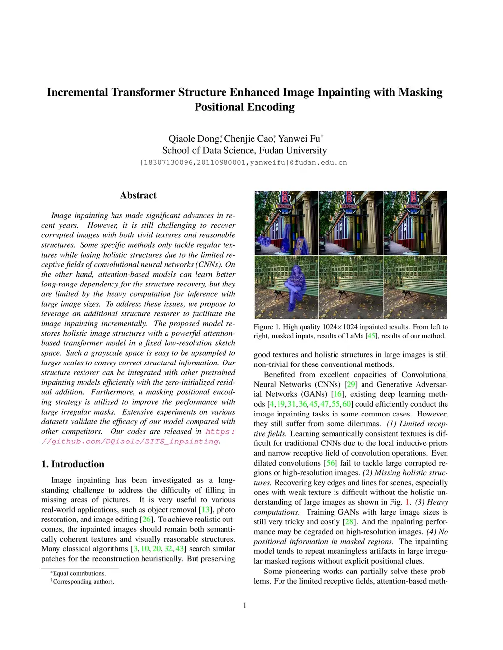 Incremental Transformer Structure Enhanced Image Inpainting with Masking