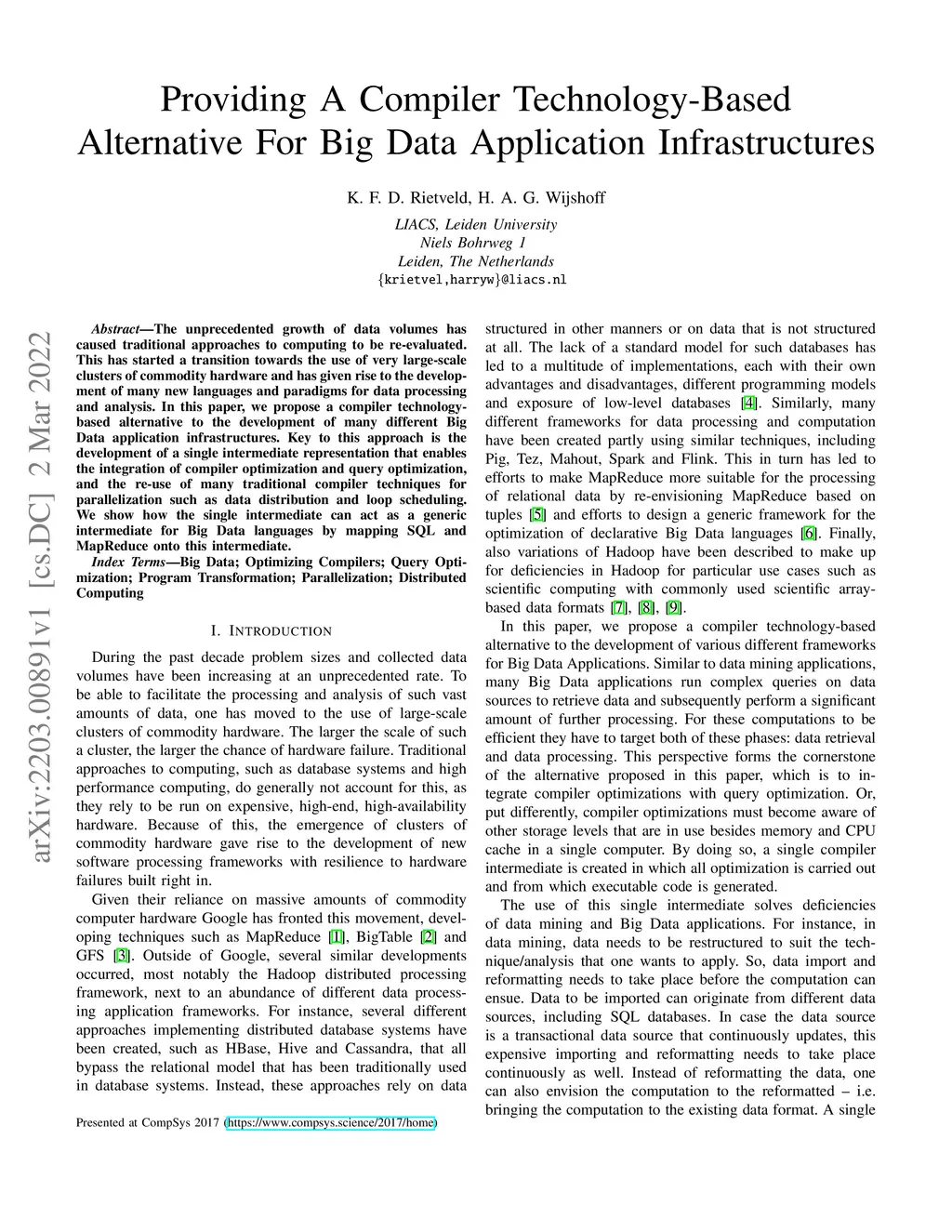 Providing A Compiler Technology-Based Alternative For Big Data