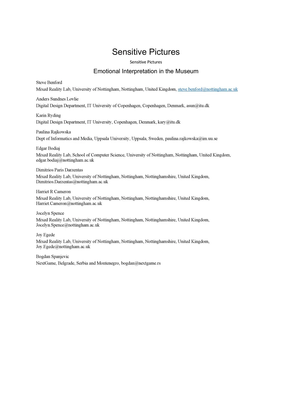 Sensitive Pictures: Emotional Interpretation in the Museum
