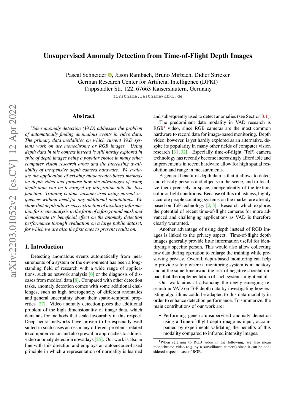 Unsupervised Anomaly Detection from Time-of-Flight Depth Images
