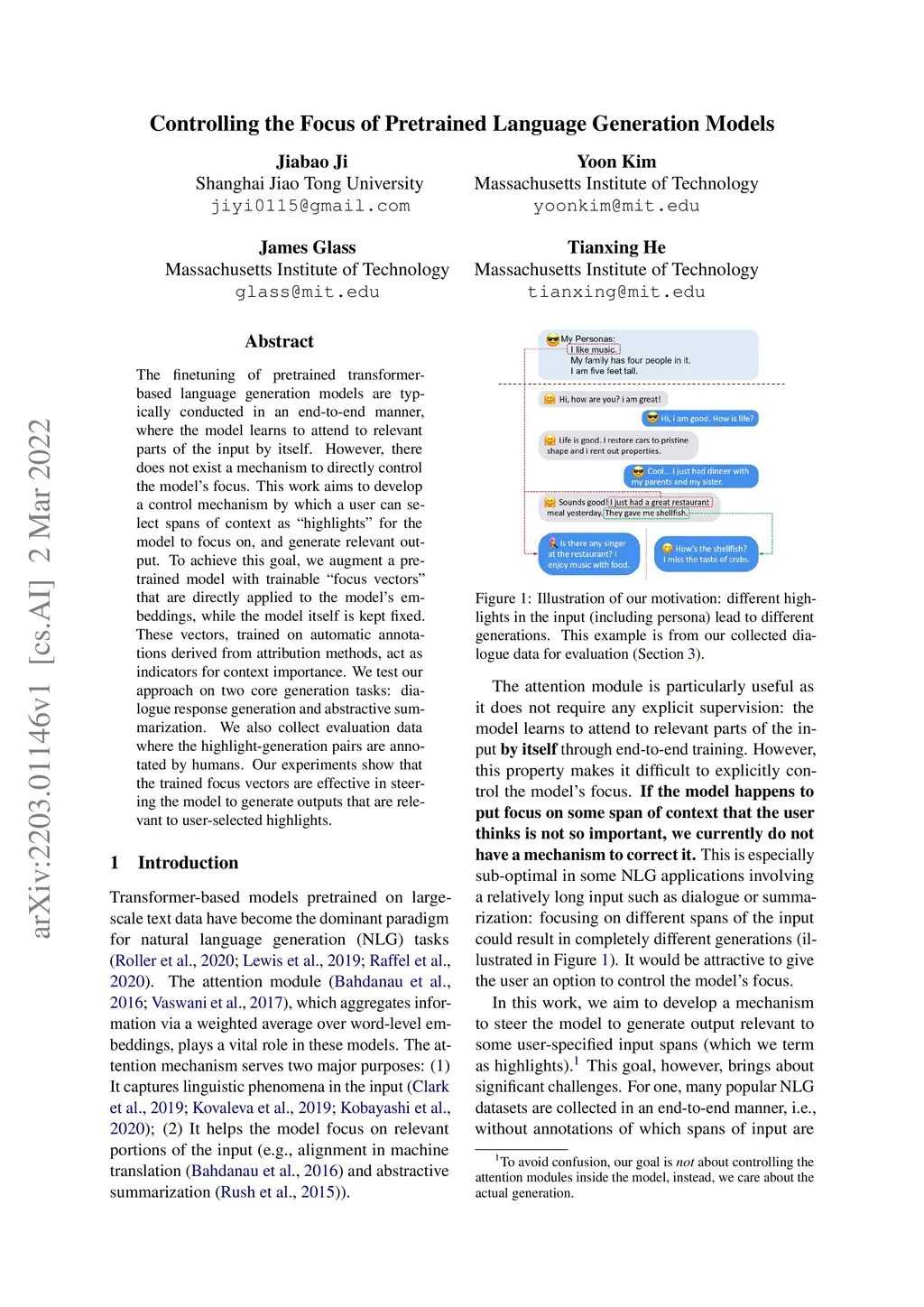 Controlling the Focus of Pretrained Language Generation Models