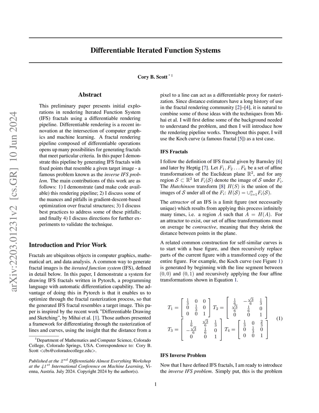 This preliminary paper presents initial explorations in rendering Iterated Function System (IFS) fractals using a differentiable rendering pipeline. Differentiable rendering is a recent innovation at the intersection of computer graphics and machine learning. A fractal rendering pipeline composed of differentiable operations opens up many possibilities for generating fractals that meet particular criteria. In this paper I demonstrate this pipeline by generating IFS fractals with fixed points that resemble a given target image - a famous problem known as the \emph{inverse IFS problem}. The main contributions of this work are as follows: 1) I demonstrate (and make code available) this rendering pipeline; 2) I discuss some of the nuances and pitfalls in gradient-descent-based optimization over fractal structures; 3) I discuss best practices to address some of these pitfalls; and finally 4) I discuss directions for further experiments to validate the technique.