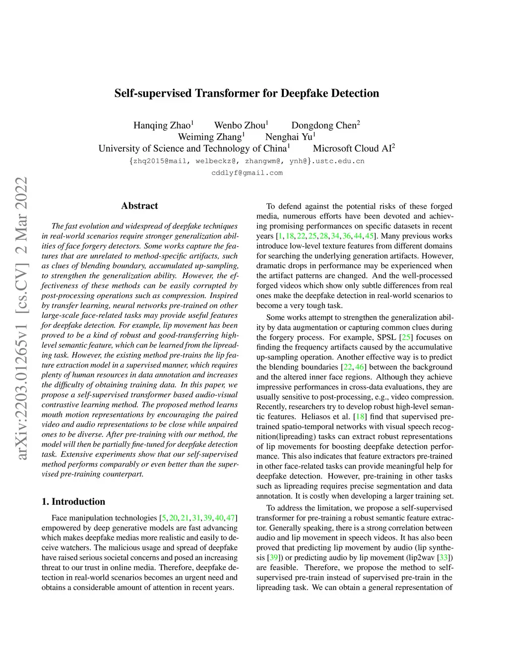Self-supervised Transformer for Deepfake Detection
