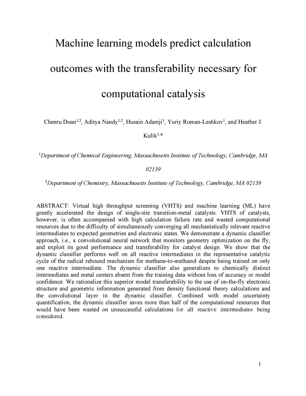 Virtual high throughput screening (VHTS) and machine learning (ML) have greatly accelerated the design of single-site transition-metal catalysts. VHTS of catalysts, however, is often accompanied with high calculation failure rate and wasted computational resources due to the difficulty of simultaneously converging all mechanistically relevant reactive intermediates to expected geometries and electronic states. We demonstrate a dynamic classifier approach, i.e., a convolutional neural network that monitors geometry optimization on the fly, and exploit its good performance and transferability for catalyst design. We show that the dynamic classifier performs well on all reactive intermediates in the representative catalytic cycle of the radical rebound mechanism for methane-to-methanol despite being trained on only one reactive intermediate. The dynamic classifier also generalizes to chemically distinct intermediates and metal centers absent from the training data without loss of accuracy or model confidence. We rationalize this superior model transferability to the use of on-the-fly electronic structure and geometric information generated from density functional theory calculations and the convolutional layer in the dynamic classifier. Combined with model uncertainty quantification, the dynamic classifier saves more than half of the computational resources that would have been wasted on unsuccessful calculations for all reactive intermediates being considered.