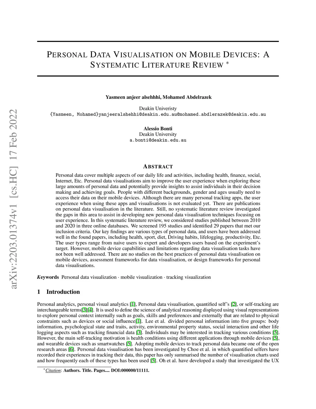 Personal Data Visualisation on Mobile Devices: A Systematic Literature