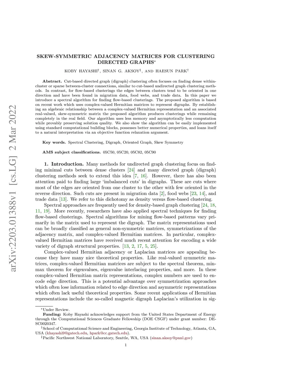 Skew-Symmetric Adjacency Matrices for Clustering Directed Graphs
