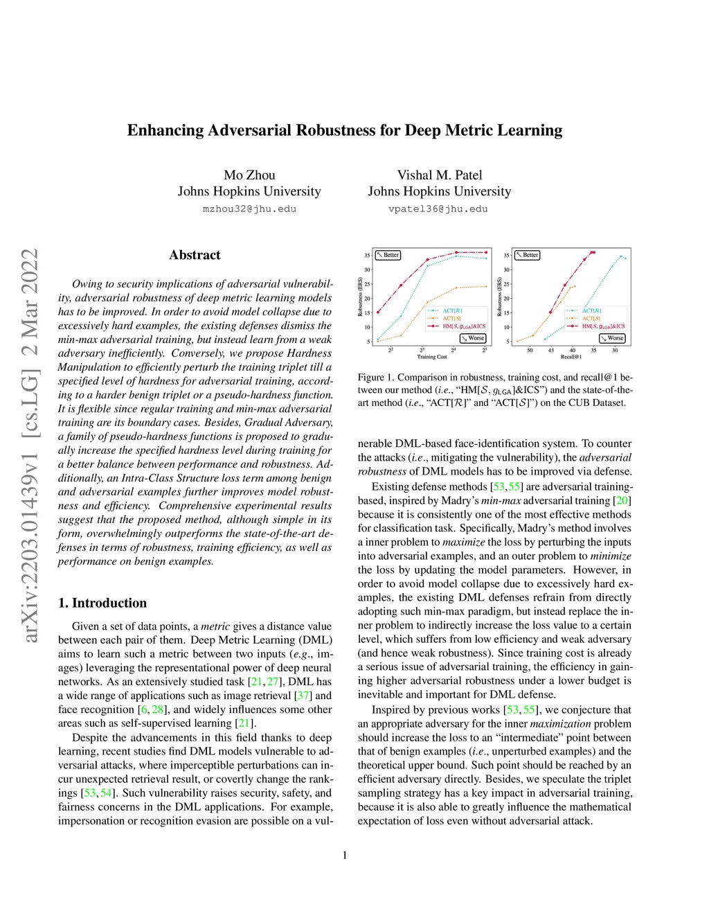 Owing to security implications of adversarial vulnerability, adversarial robustness of deep metric learning models has to be improved. In order to avoid model collapse due to excessively hard examples, the existing defenses dismiss the min-max adversarial training, but instead learn from a weak adversary inefficiently. Conversely, we propose Hardness Manipulation to efficiently perturb the training triplet till a specified level of hardness for adversarial training, according to a harder benign triplet or a pseudo-hardness function. It is flexible since regular training and min-max adversarial training are its boundary cases. Besides, Gradual Adversary, a family of pseudo-hardness functions is proposed to gradually increase the specified hardness level during training for a better balance between performance and robustness. Additionally, an Intra-Class Structure loss term among benign and adversarial examples further improves model robustness and efficiency. Comprehensive experimental results suggest that the proposed method, although simple in its form, overwhelmingly outperforms the state-of-the-art defenses in terms of robustness, training efficiency, as well as performance on benign examples.