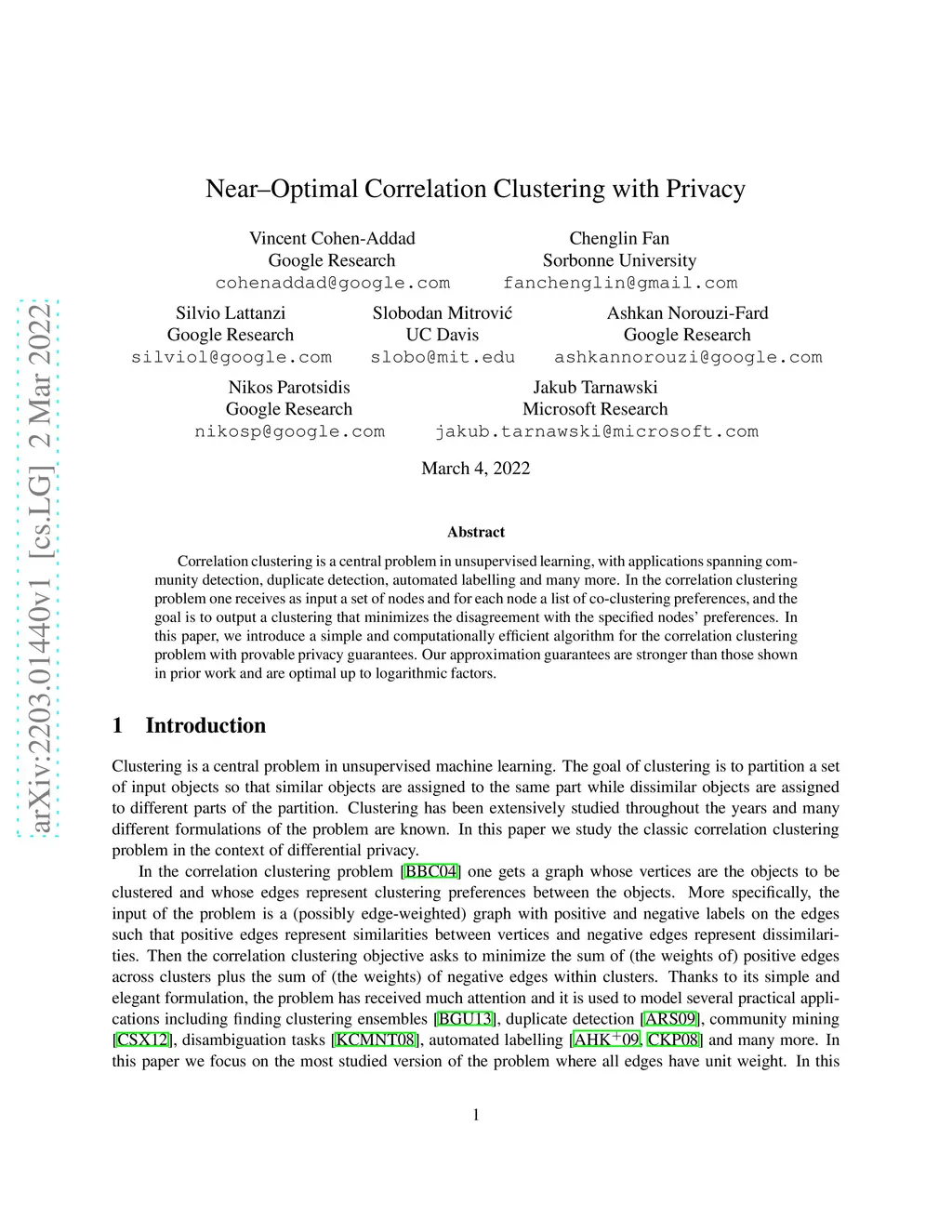 Correlation clustering is a central problem in unsupervised learning, with applications spanning community detection, duplicate detection, automated labelling and many more. In the correlation clustering problem one receives as input a set of nodes and for each node a list of co-clustering preferences, and the goal is to output a clustering that minimizes the disagreement with the specified nodes' preferences. In this paper, we introduce a simple and computationally efficient algorithm for the correlation clustering problem with provable privacy guarantees. Our approximation guarantees are stronger than those shown in prior work and are optimal up to logarithmic factors.