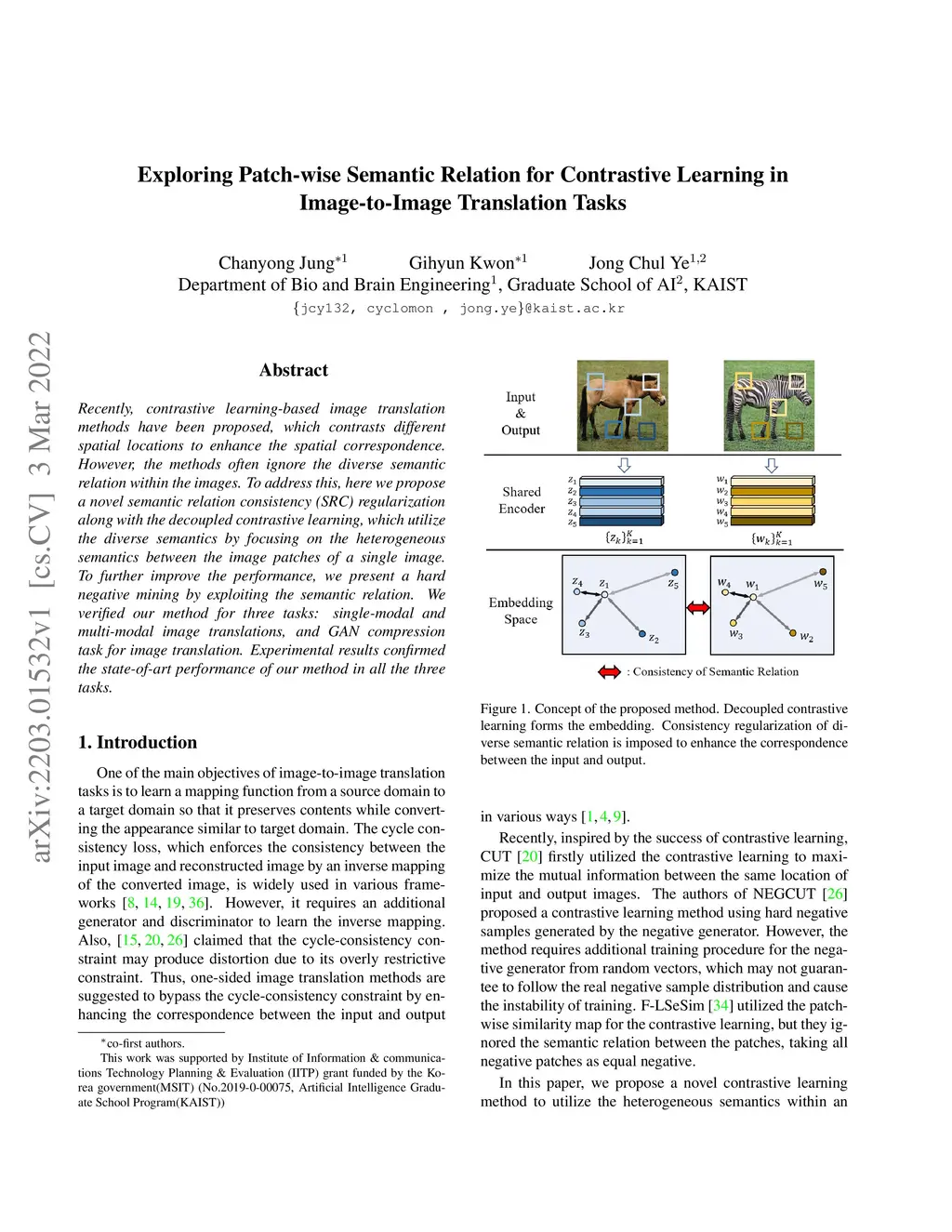 Recently, contrastive learning-based image translation methods have been proposed, which contrasts different spatial locations to enhance the spatial correspondence. However, the methods often ignore the diverse semantic relation within the images. To address this, here we propose a novel semantic relation consistency (SRC) regularization along with the decoupled contrastive learning, which utilize the diverse semantics by focusing on the heterogeneous semantics between the image patches of a single image. To further improve the performance, we present a hard negative mining by exploiting the semantic relation. We verified our method for three tasks: single-modal and multi-modal image translations, and GAN compression task for image translation. Experimental results confirmed the state-of-art performance of our method in all the three tasks.