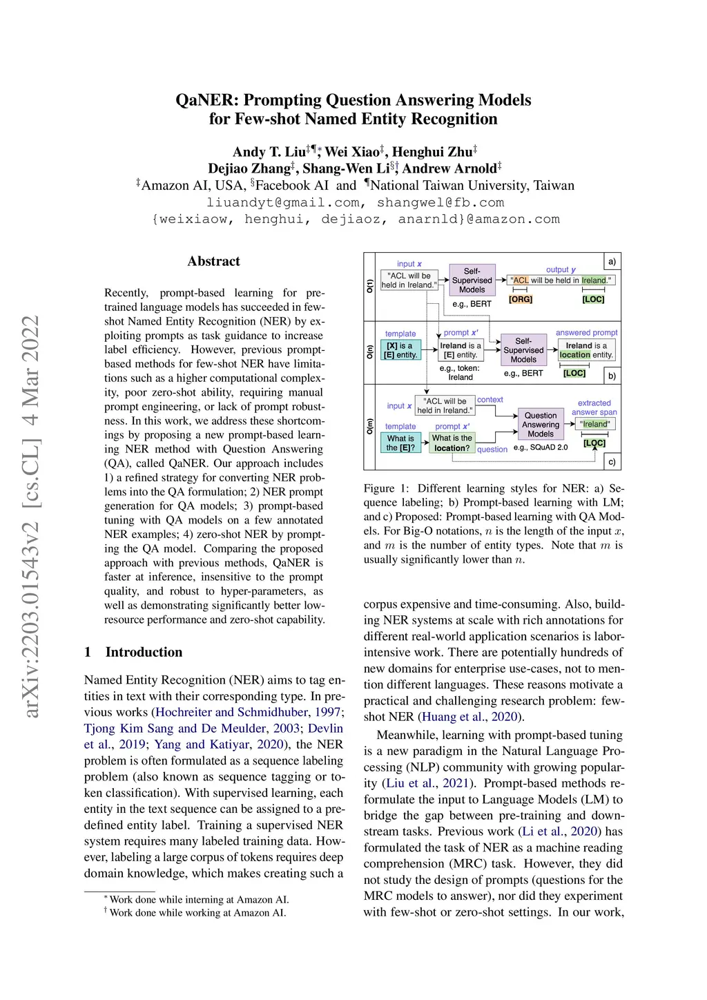 QaNER: Prompting Question Answering Models for Few-shot Named Entity