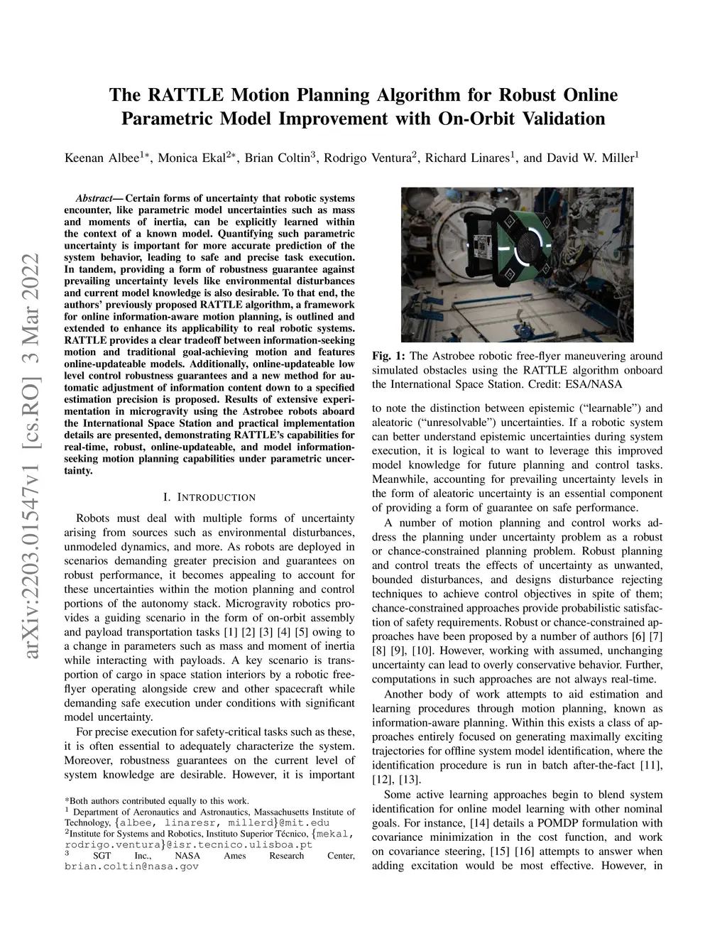 Certain forms of uncertainty that robotic systems encounter can be explicitly learned within the context of a known model, like parametric model uncertainties such as mass and moments of inertia. Quantifying such parametric uncertainty is important for more accurate prediction of the system behavior, leading to safe and precise task execution. In tandem, providing a form of robustness guarantee against prevailing uncertainty levels like environmental disturbances and current model knowledge is also desirable. To that end, the authors' previously proposed RATTLE algorithm, a framework for online information-aware motion planning, is outlined and extended to enhance its applicability to real robotic systems. RATTLE provides a clear tradeoff between information-seeking motion and traditional goal-achieving motion and features online-updateable models. Additionally, online-updateable low level control robustness guarantees and a new method for automatic adjustment of information content down to a specified estimation precision is proposed. Results of extensive experimentation in microgravity using the Astrobee robots aboard the International Space Station and practical implementation details are presented, demonstrating RATTLE's capabilities for real-time, robust, online-updateable, and model information-seeking motion planning capabilities under parametric uncertainty.