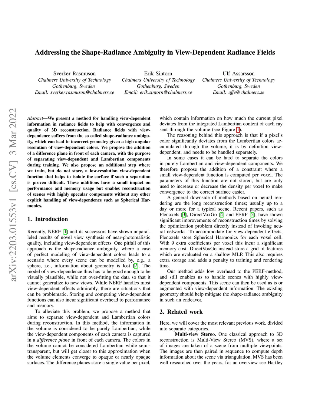 Addressing the Shape-Radiance Ambiguity in View-Dependent Radiance