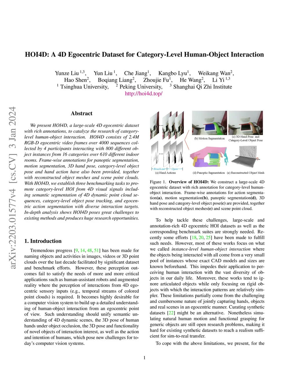 HOI4D: A 4D Egocentric Dataset for Category-Level Human-Object