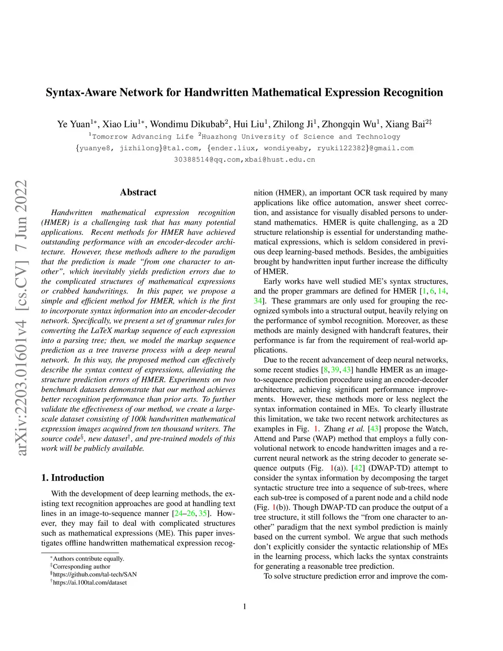 Syntax-Aware Network for Handwritten Mathematical Expression Recognition