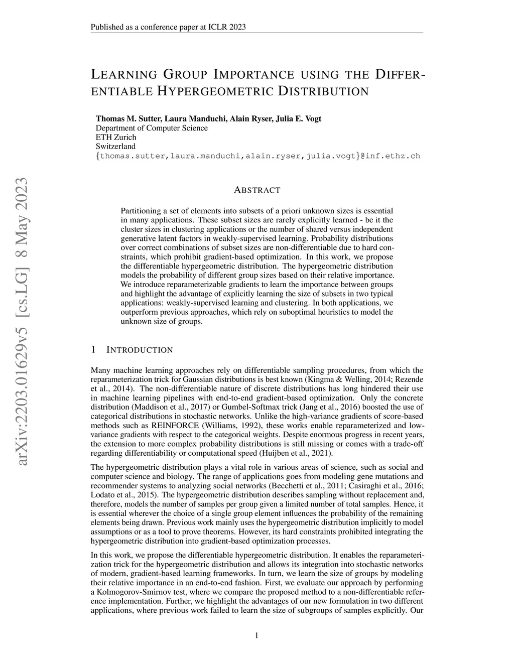 Learning Group Importance using the Differentiable Hypergeometric