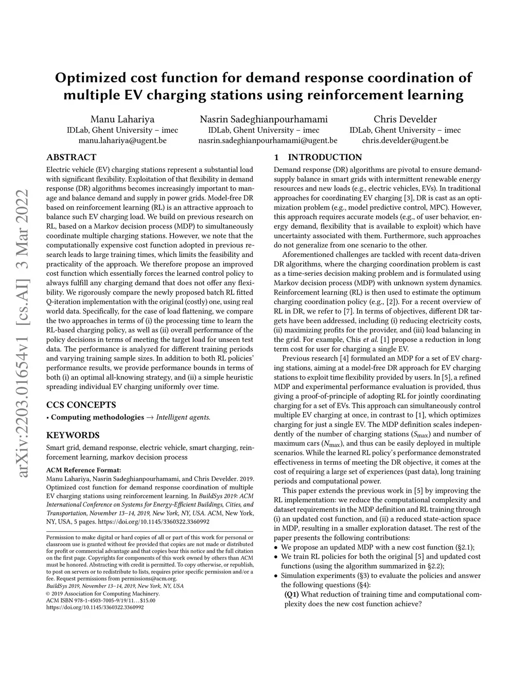 Electric vehicle (EV) charging stations represent a substantial load with significant flexibility. The exploitation of that flexibility in demand response (DR) algorithms becomes increasingly important to manage and balance demand and supply in power grids. Model-free DR based on reinforcement learning (RL) is an attractive approach to balance such EV charging load. We build on previous research on RL, based on a Markov decision process (MDP) to simultaneously coordinate multiple charging stations. However, we note that the computationally expensive cost function adopted in the previous research leads to large training times, which limits the feasibility and practicality of the approach. We, therefore, propose an improved cost function that essentially forces the learned control policy to always fulfill any charging demand that does not offer any flexibility. We rigorously compare the newly proposed batch RL fitted Q-iteration implementation with the original (costly) one, using real-world data. Specifically, for the case of load flattening, we compare the two approaches in terms of (i) the processing time to learn the RL-based charging policy, as well as (ii) the overall performance of the policy decisions in terms of meeting the target load for unseen test data. The performance is analyzed for different training periods and varying training sample sizes. In addition to both RL policies performance results, we provide performance bounds in terms of both (i) an optimal all-knowing strategy, and (ii) a simple heuristic spreading individual EV charging uniformly over time