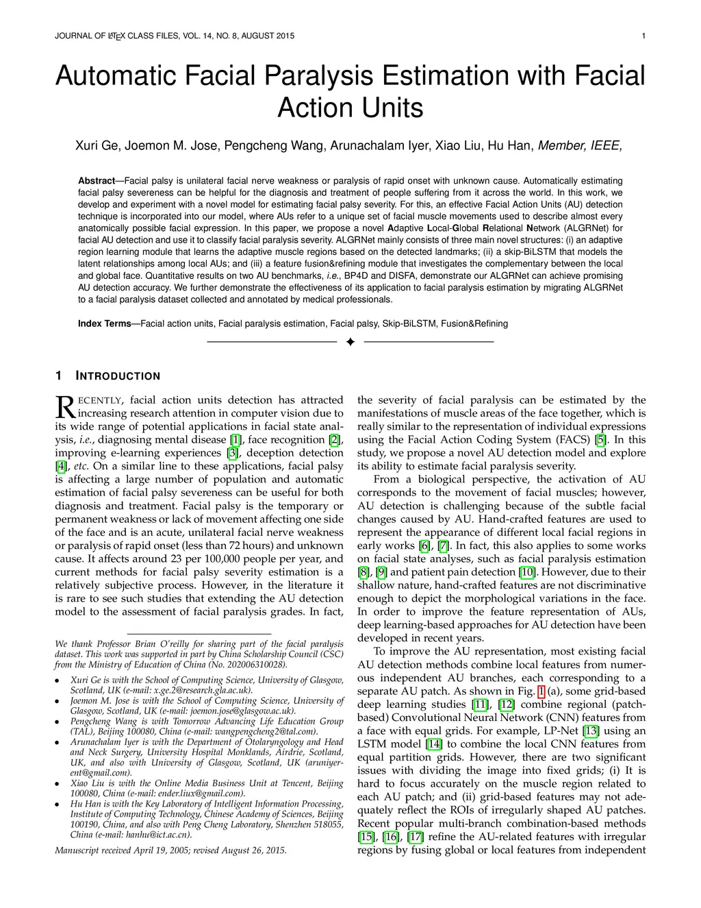 Automatic Facial Paralysis Estimation with Facial Action Units