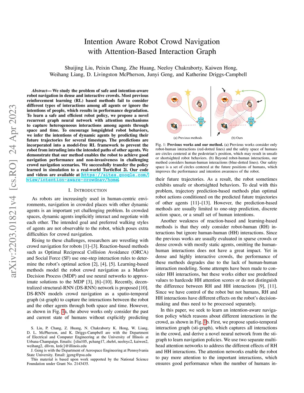 Intention Aware Robot Crowd Navigation with Attention-Based Interaction