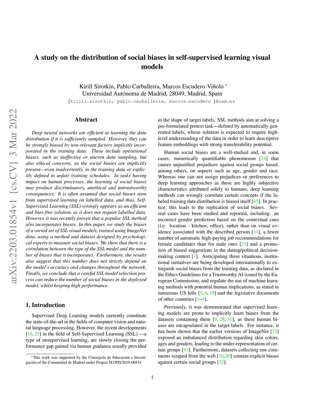 A study on the distribution of social biases in self-supervised learning