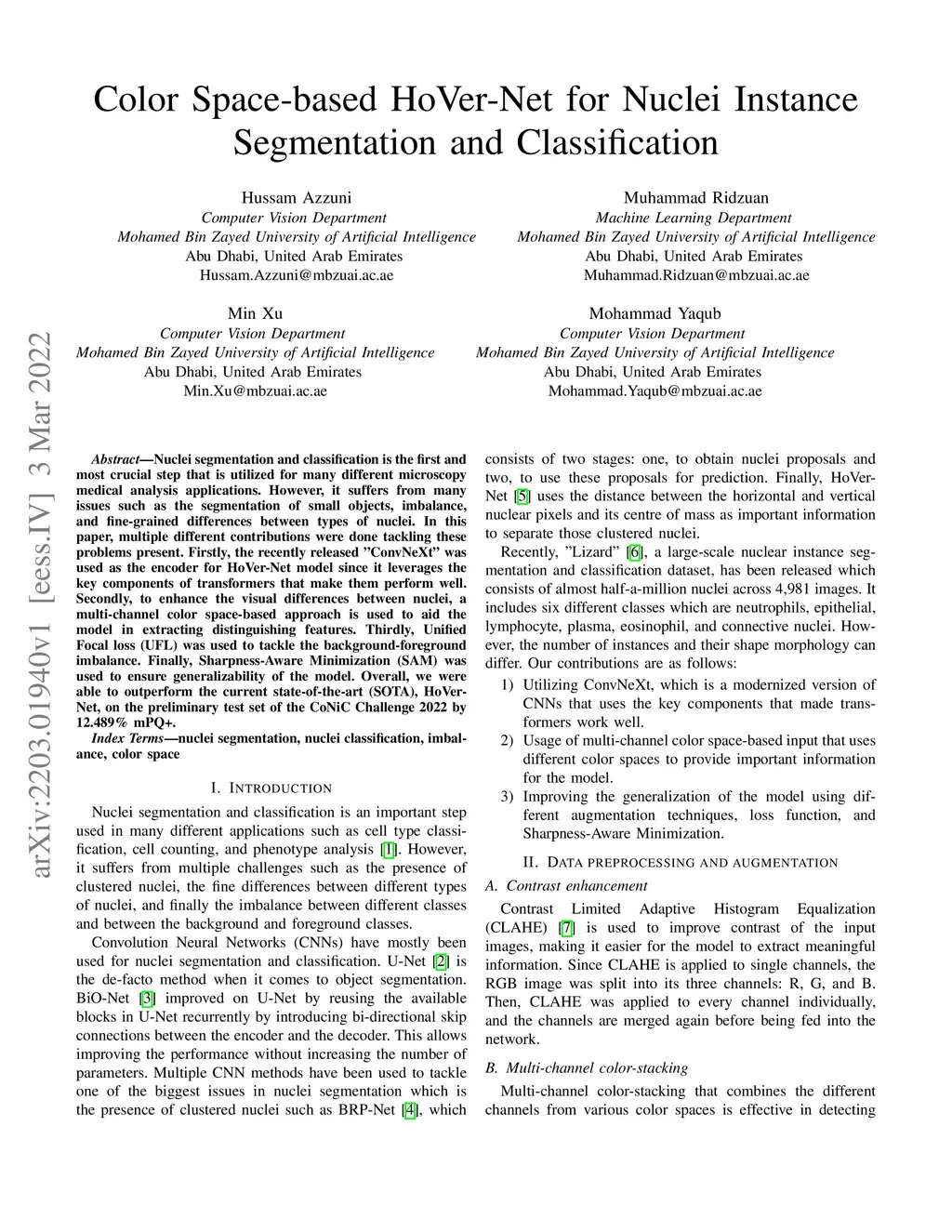 Color Space-based HoVer-Net for Nuclei Instance Segmentation and