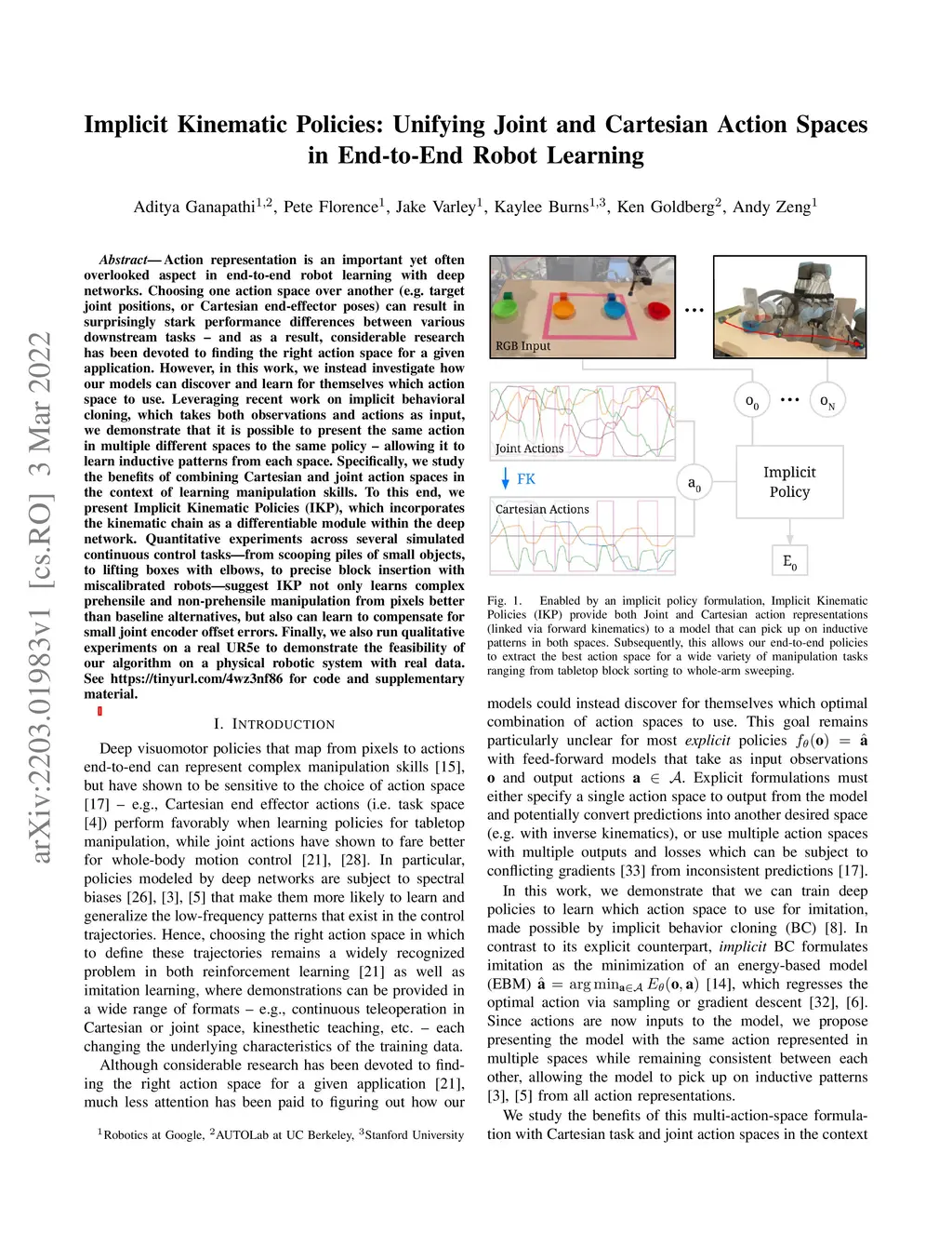 Implicit Kinematic Policies: Unifying Joint and Cartesian Action Spaces