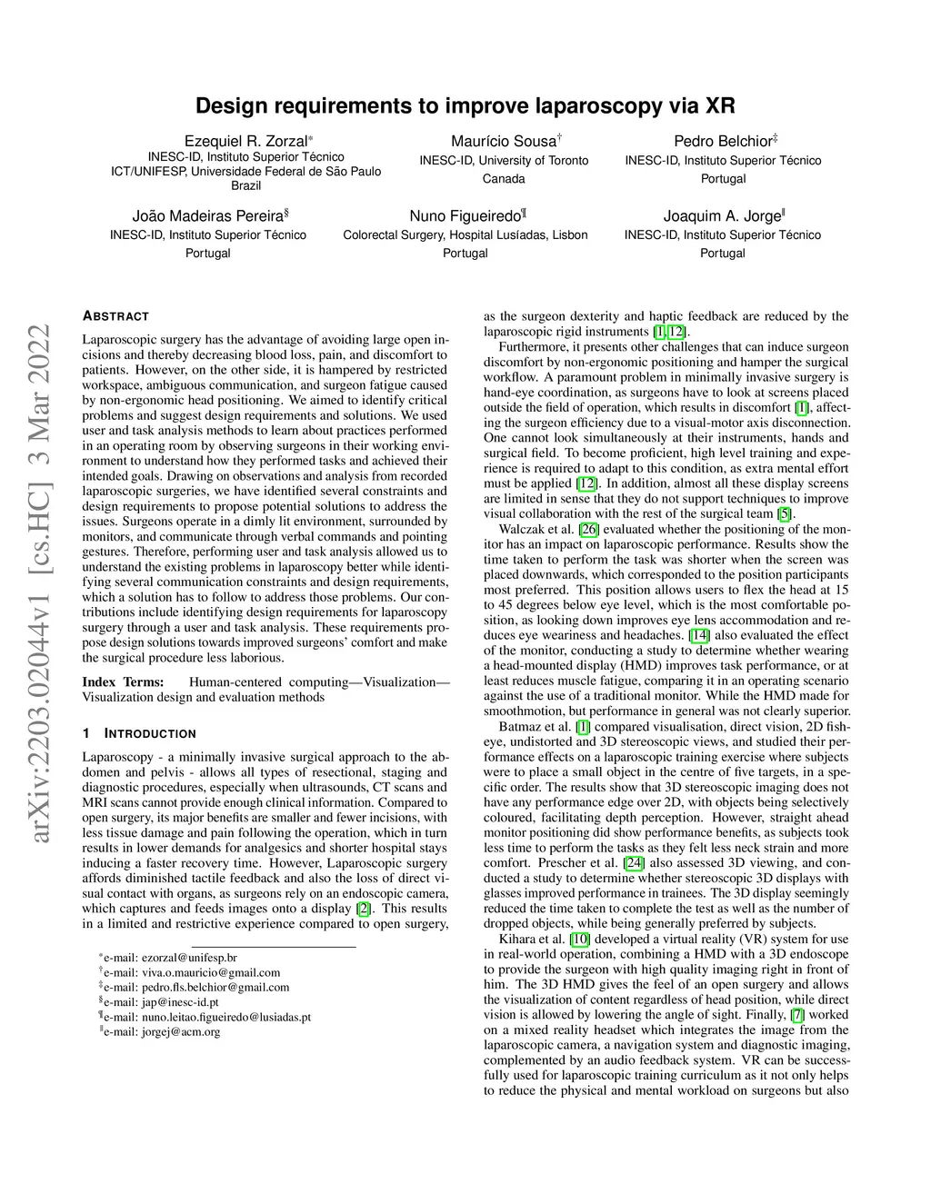 Laparoscopic surgery has the advantage of avoiding large open incisions and thereby decreasing blood loss, pain, and discomfort to patients. However, on the other side, it is hampered by restricted workspace, ambiguous communication, and surgeon fatigue caused by non-ergonomic head positioning. We aimed to identify critical problems and suggest design requirements and solutions. We used user and task analysis methods to learn about practices performed in an operating room by observing surgeons in their working environment to understand how they performed tasks and achieved their intended goals. Drawing on observations and analysis from recorded laparoscopic surgeries, we have identified several constraints and design requirements to propose potential solutions to address the issues. Surgeons operate in a dimly lit environment, surrounded by monitors, and communicate through verbal commands and pointing gestures. Therefore, performing user and task analysis allowed us to better understand the existing problems in laparoscopy while identifying several communication constraints and design requirements, which a solution has to follow to address those problems. Our contributions include identifying design requirements for laparoscopy surgery through a user and task analysis. These requirements propose design solutions towards improved surgeons' comfort and make the surgical procedure less laborious.