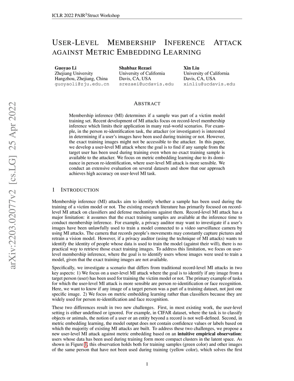User-Level Membership Inference Attack against Metric Embedding Learning
