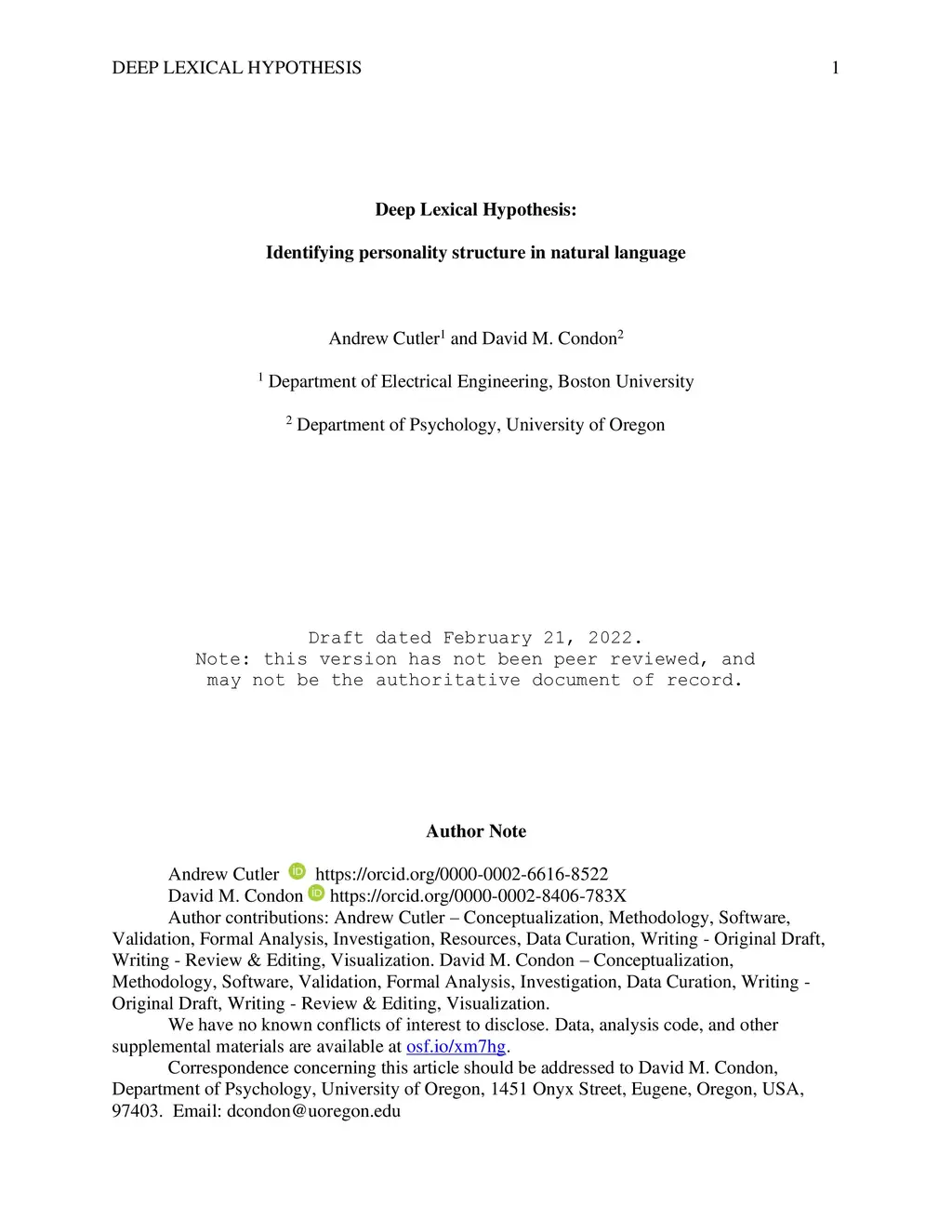 Deep Lexical Hypothesis: Identifying personality structure in natural