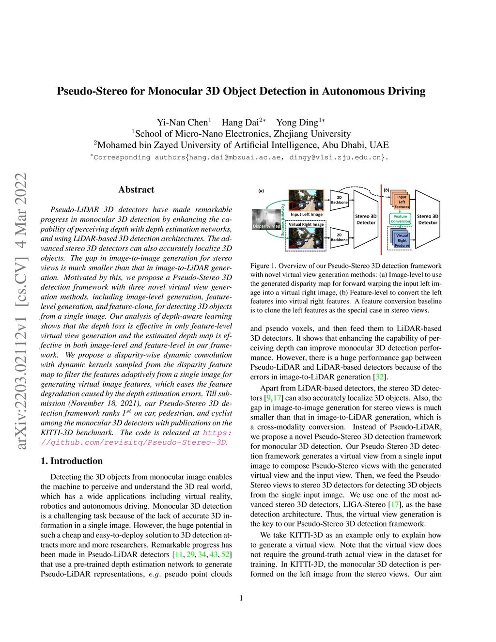 Pseudo-Stereo for Monocular 3D Object Detection in Autonomous Driving