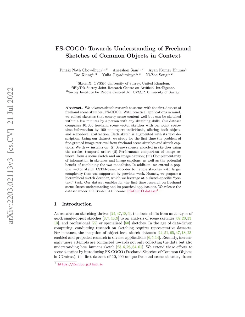 FS-COCO: Towards Understanding of Freehand Sketches of Common Objects in