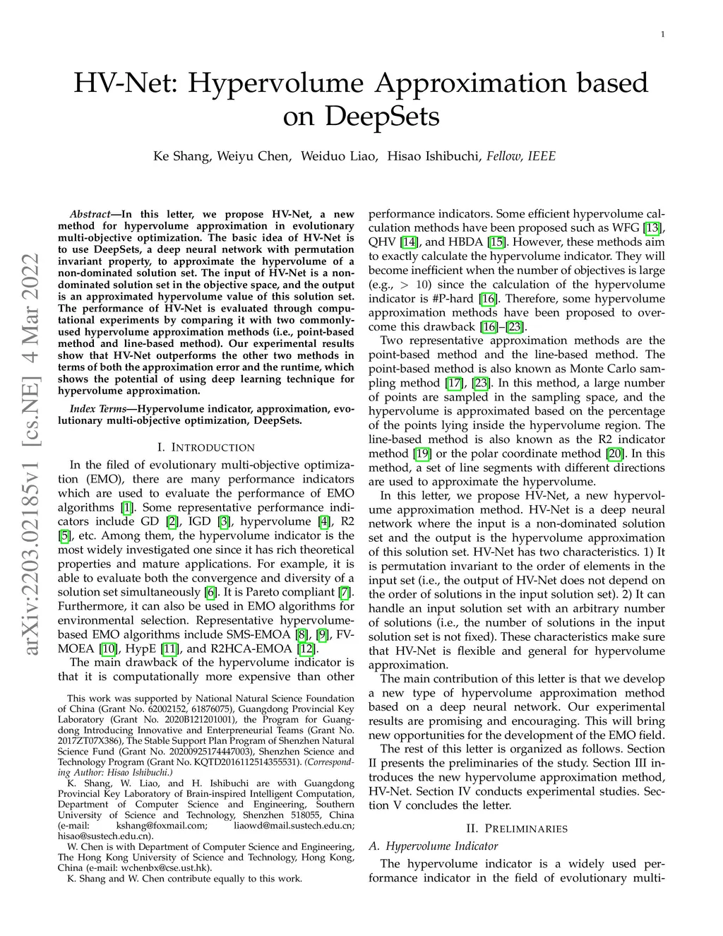 In this letter, we propose HV-Net, a new method for hypervolume approximation in evolutionary multi-objective optimization. The basic idea of HV-Net is to use DeepSets, a deep neural network with permutation invariant property, to approximate the hypervolume of a non-dominated solution set. The input of HV-Net is a non-dominated solution set in the objective space, and the output is an approximated hypervolume value of this solution set. The performance of HV-Net is evaluated through computational experiments by comparing it with two commonly-used hypervolume approximation methods (i.e., point-based method and line-based method). Our experimental results show that HV-Net outperforms the other two methods in terms of both the approximation error and the runtime, which shows the potential of using deep learning technique for hypervolume approximation.