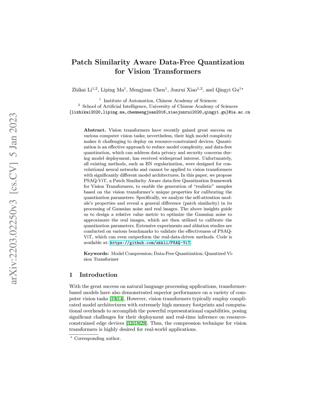 Patch Similarity Aware Data-Free Quantization for Vision Transformers