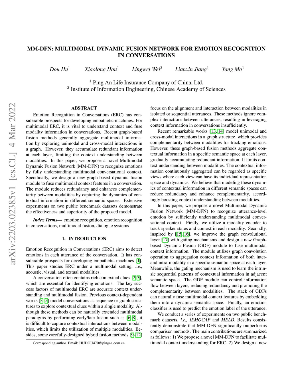 MM-DFN: Multimodal Dynamic Fusion Network for Emotion Recognition in