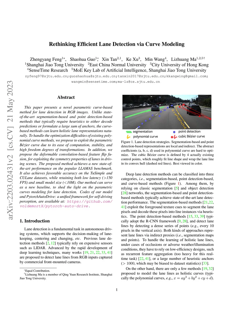 This paper presents a novel parametric curve-based method for lane detection in RGB images. Unlike state-of-the-art segmentation-based and point detection-based methods that typically require heuristics to either decode predictions or formulate a large sum of anchors, the curve-based methods can learn holistic lane representations naturally. To handle the optimization difficulties of existing polynomial curve methods, we propose to exploit the parametric B\ézier curve due to its ease of computation, stability, and high freedom degrees of transformations. In addition, we propose the deformable convolution-based feature flip fusion, for exploiting the symmetry properties of lanes in driving scenes. The proposed method achieves a new state-of-the-art performance on the popular LLAMAS benchmark. It also achieves favorable accuracy on the TuSimple and CULane datasets, while retaining both low latency (> 150 FPS) and small model size (< 10M). Our method can serve as a new baseline, to shed the light on the parametric curves modeling for lane detection. Codes of our model and PytorchAutoDrive: a unified framework for self-driving perception, are available at: https://github.com/voldemortX/pytorch-auto-drive .
