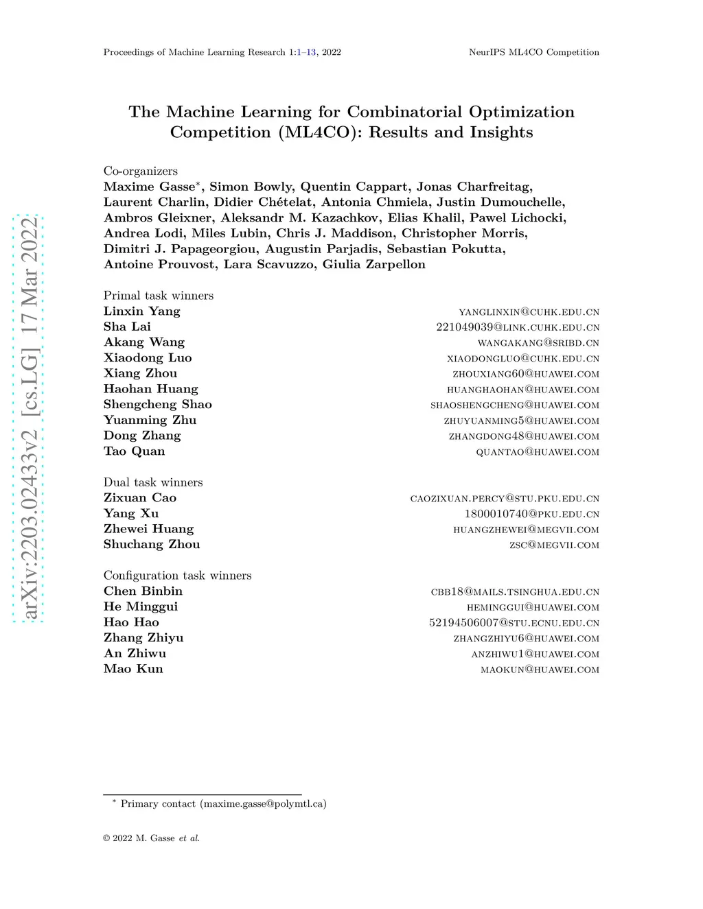 The Machine Learning for Combinatorial Optimization Competition (ML4CO):