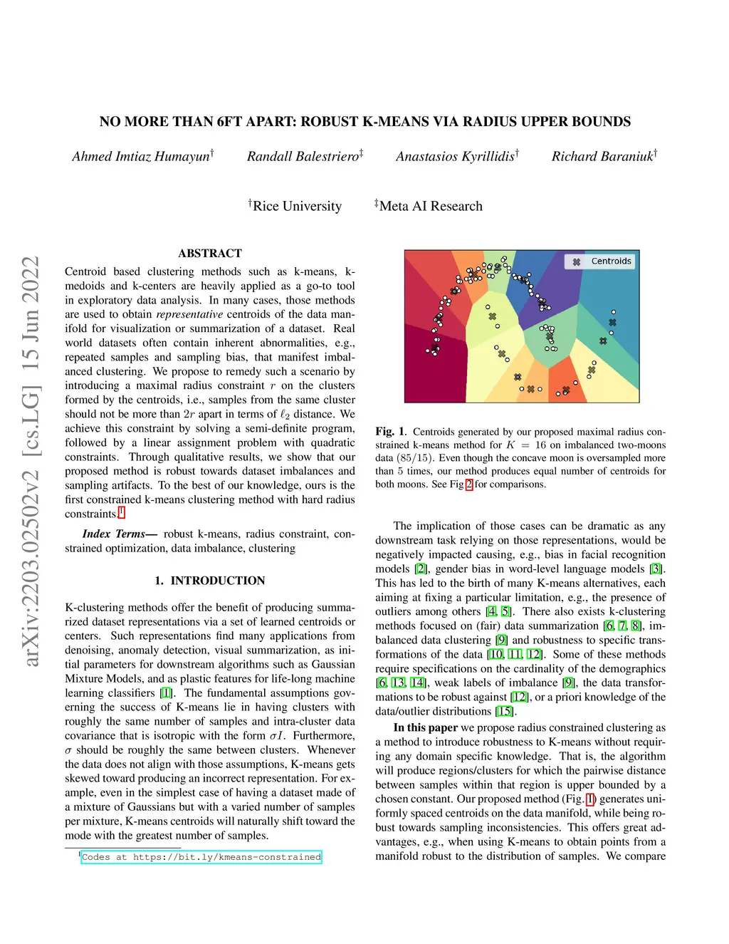 No More Than 6ft Apart: Robust K-Means via Radius Upper Bounds