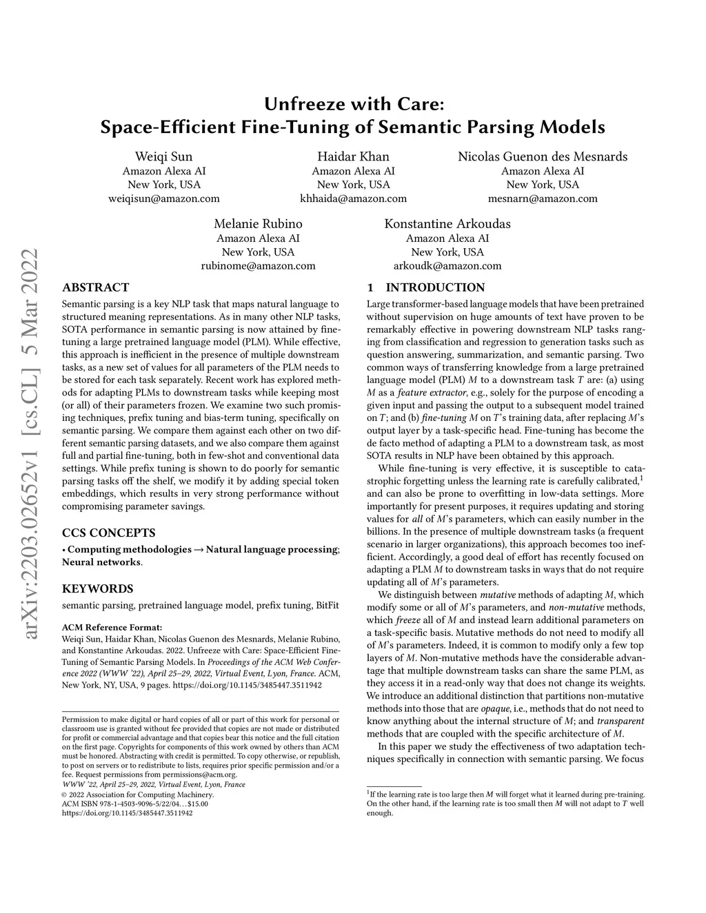 Unfreeze with Care: Space-Efficient Fine-Tuning of Semantic Parsing