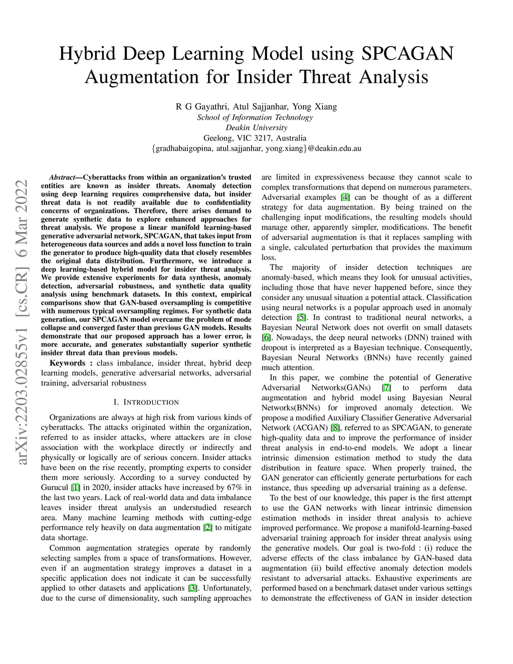 Hybrid Deep Learning Model using SPCAGAN Augmentation for Insider Threat