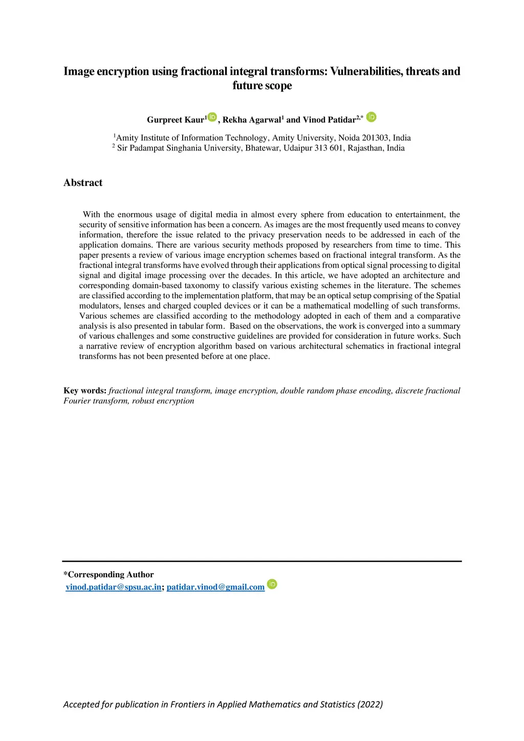 Image Encryption using fractional integral transforms: Vulnerabilities,