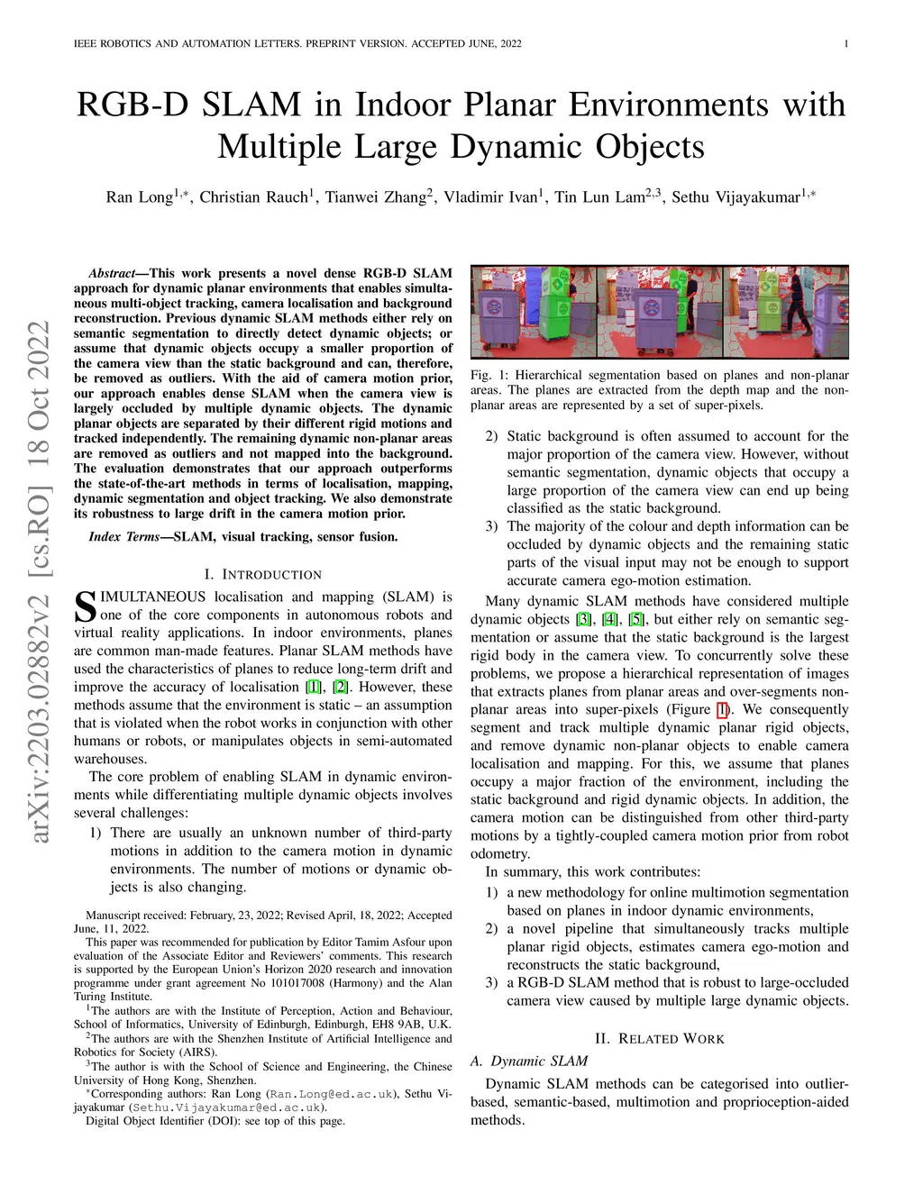 RGB-D SLAM in Indoor Planar Environments with Multiple Large Dynamic