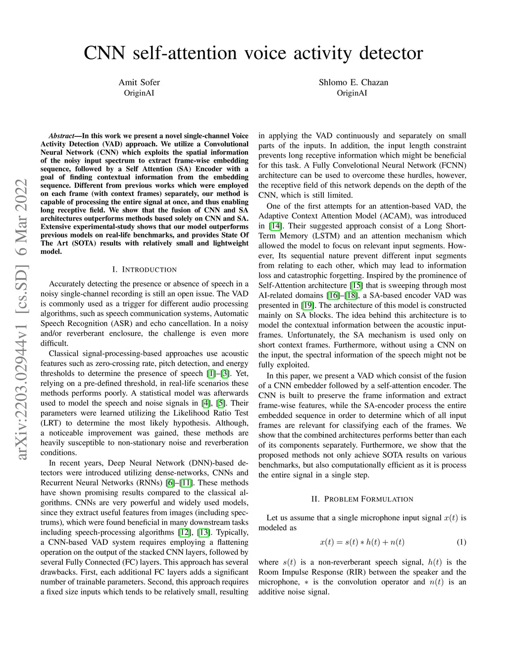 CNN self-attention voice activity detector