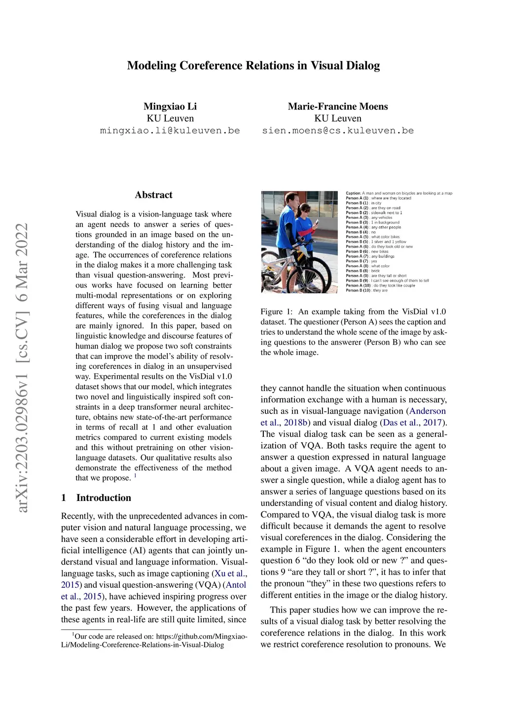 Modeling Coreference Relations in Visual Dialog