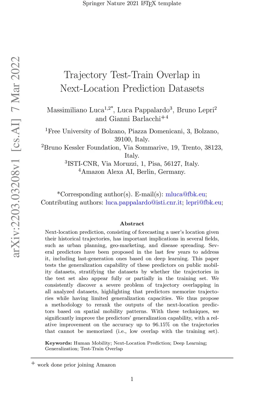 Trajectory Test-Train Overlap in Next-Location Prediction Datasets