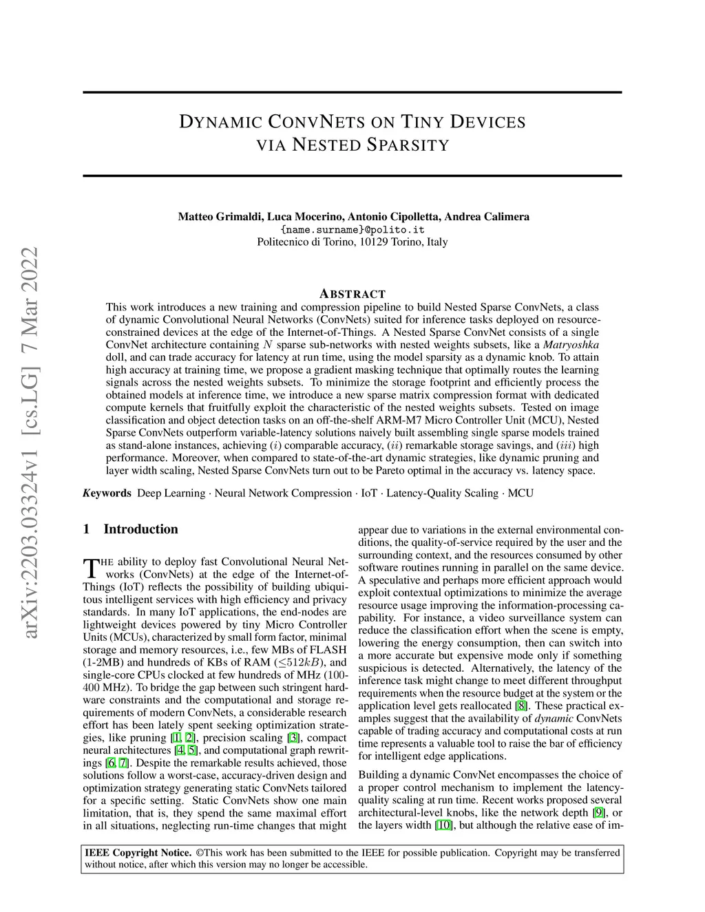 Dynamic ConvNets on Tiny Devices via Nested Sparsity