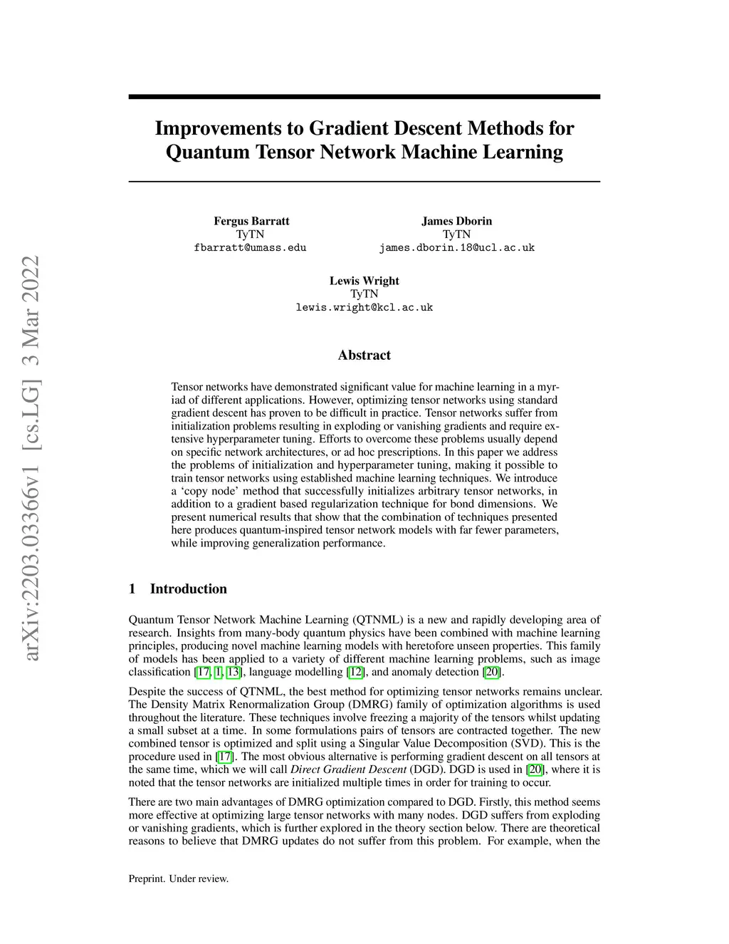 Improvements to Gradient Descent Methods for Quantum Tensor Network