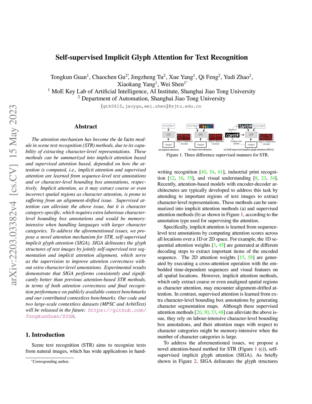 Self-supervised Implicit Glyph Attention for Text Recognition