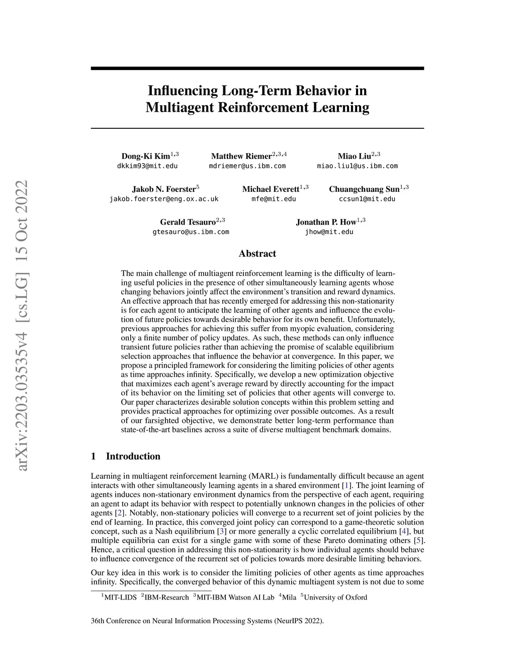 Influencing Long-Term Behavior in Multiagent Reinforcement Learning
