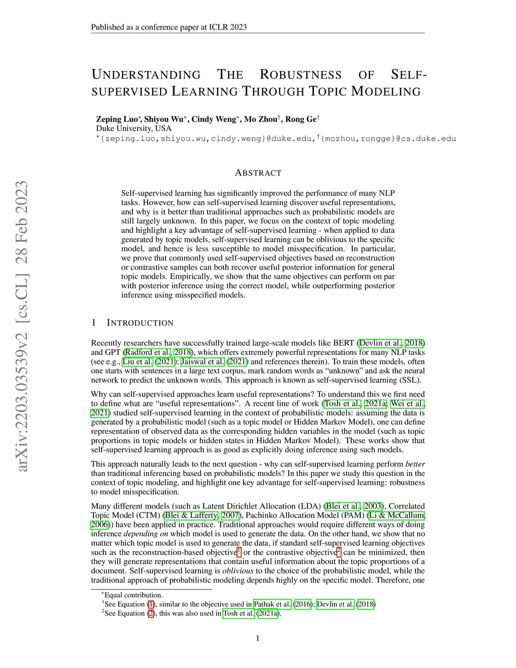 Understanding The Robustness of Self-supervised Learning Through Topic