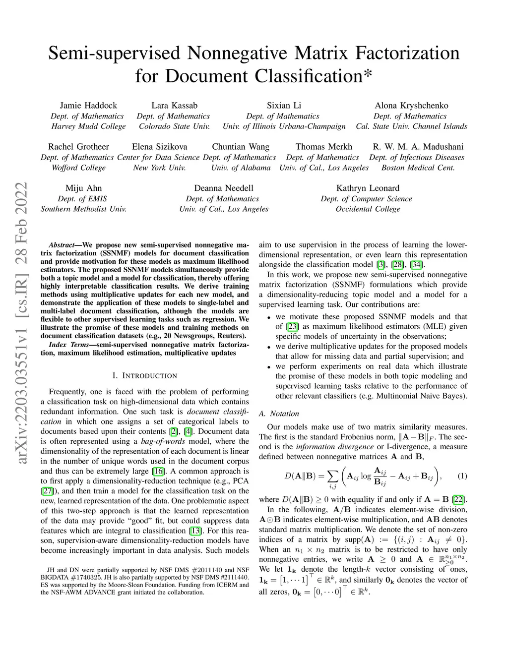 Semi-supervised Nonnegative Matrix Factorization for Document