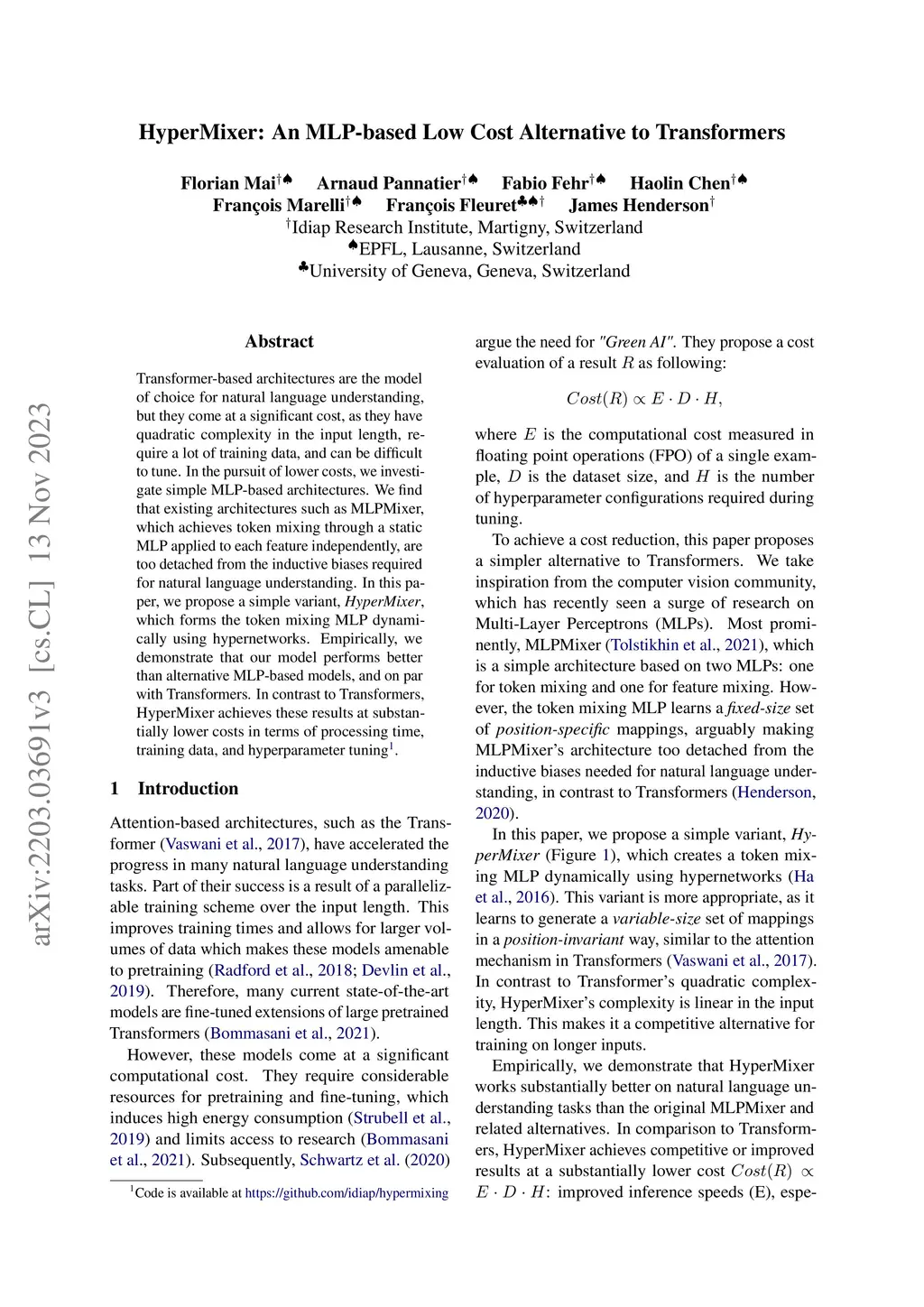 HyperMixer: An MLP-based Low Cost Alternative to Transformers
